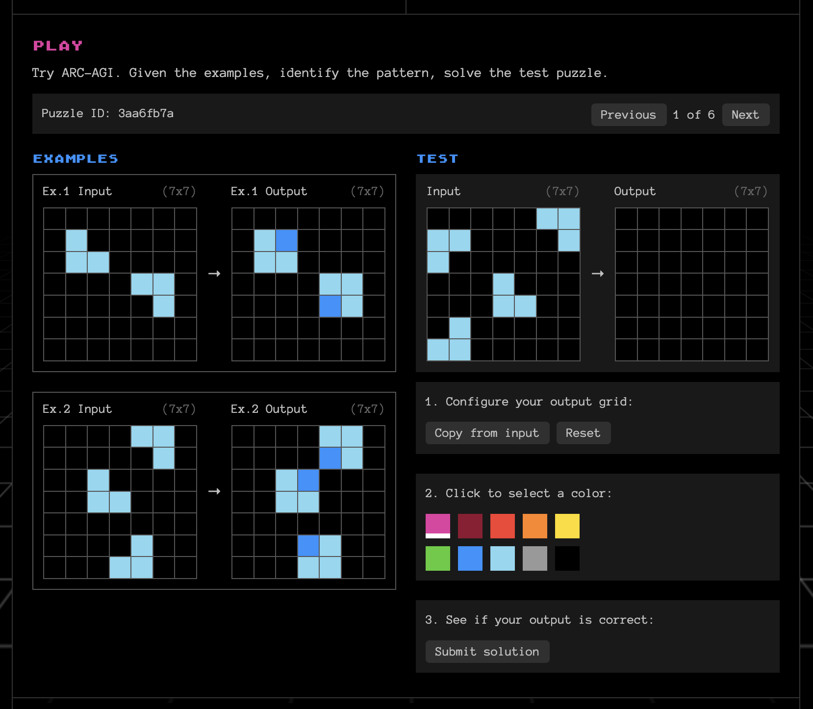 - S vývojem nových modelů narůstá i potřeba je porovnávat a vyhodnocovat. Protože veřejné benchmarky se dostávají chtěně či nechtěně i do trénovacích dat, potřeba jsou lepší benchmarky, které toto řeší. Jedním z takových může být i LiveBench, který se bude pravidelně aktualizovat a bude privátní. Dalším takovým benchmarkem je arcprize, který je hodnocen jako benchmark toho, jak blízko jsme k AGI (artificial general intelligence). Dokonce nabízí půlmilionovou odměnu tomu, kdo na něm dosáhne 85 %. Na jejich stránce si můžete vyzkoušet, jak takové úlohy vypadají.
